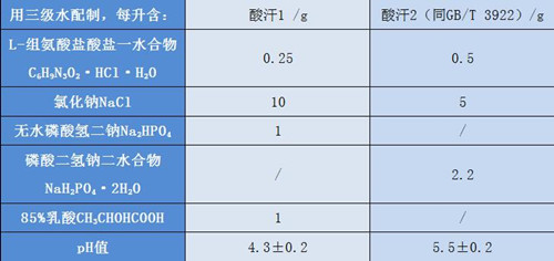 另外,新标准里增加了一种酸汗液1,它的配方与GB3922-2013不同,见下表: